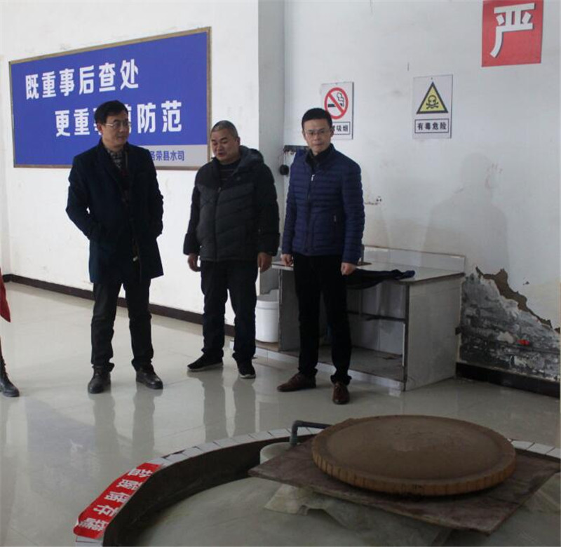 12月26日,由公司總經理龔慶帶隊、副總經理畢雪桃及安全生產辦公室成員一行到生產廠區的取水泵房、變壓器、加壓泵房、鹽酸儲藥間、收費大廳、財富中央17棟地下車庫、雙溪水庫應急泵房等處進行安全生產隱患排查暨節前安全大檢查工作。在財富中央17棟地下車庫,安辦一行詳細了解了該小區二次供水設施設備情況,詢問了相關室外供水管道敷設情況。經檢查,施工現場施工行為規范、取水泵房、加壓泵房的水泵機組運行正常、兩臺400KVA變壓器正常運行、一臺200KW的柴油發電機也定期進行維護保養、雙溪水庫應急取水泵房設施設備完好無損,鹽酸儲藥間的儲存罐暫無發現破損情況。公司建筑物、構筑物結構安全,公司周邊圍墻、邊坡、堡坎地質災害防范措施到位。