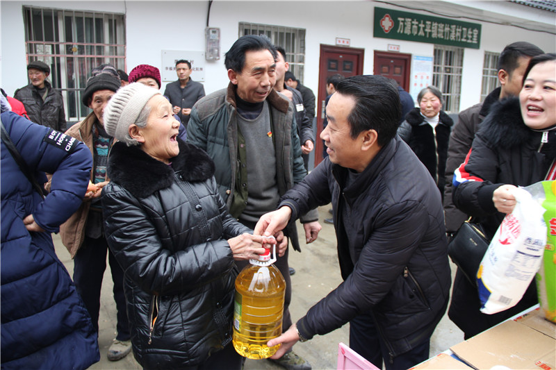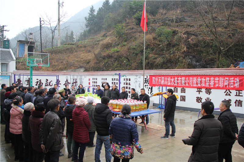 在新春佳節即將到來之際,萬源水司為深入推進脫貧攻堅工作,讓村民渡過一個溫暖、愉快的春節,1月28日,公司經營班子成員和幫扶責任人來到定點幫扶的太平鎮斑竹溪村開展春節慰問活動。