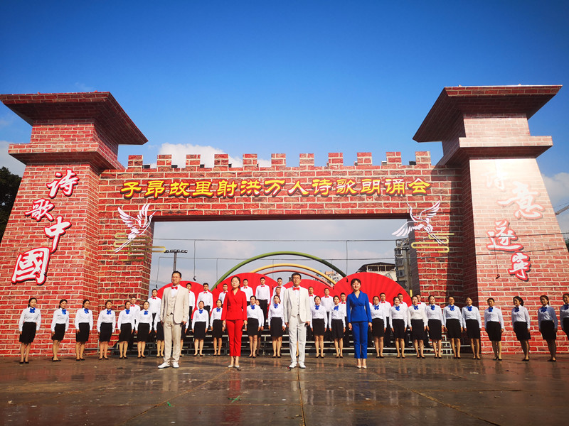“前不見古人,后不見來者。念天地之悠悠,獨愴然而涕下。”2019年3月4日下午2:00,射洪縣子昂文化廣場上,昂首面向手握書卷的陳子昂銅像,一群書童打扮的小學生們高聲誦讀祭文,近萬名觀眾三拜文宗,拉開了“詩歌中國,詩意遂寧”射洪萬人詩歌朗誦會的大幕。中國作協副主席、中國作協兒童文學委員會主任高洪波,《詩刊》雜志主編李少君,市委常委、宣傳部長涂虹,市委常委、副市長袁超,市政協副主席胡家正,縣領導張韜、鄧茂、張朝書、王勇、王慶華及中外著名詩人、作家、文化學者等出席詩歌朗誦會。
