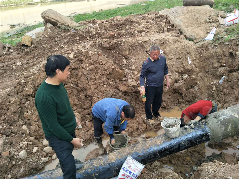2019年3月20日,劍閣水司執行董事、總經理何天政帶領副總經理杜剛等相關部門負責人,就檢查中發現的劉家河原水管道被洪雨季節沖刷裸露在河床外的隱患進行整治,確保洪水季節來臨原水管道的正常供應保障。