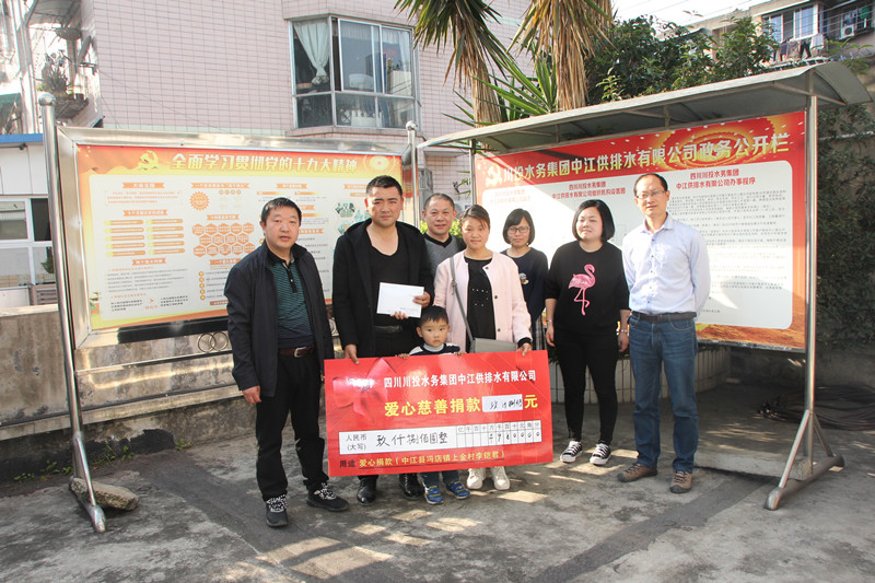 3月25日,中江水司發出了為公司幫扶的馮店鎮上金村貧困戶李武龍之子李鎧君的“獻愛心捐款倡議”,號召公司員工伸出援助之手,獻出微薄之力,為病人提供關懷和幫助。
