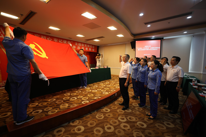 下午的會議為上一屆全體支委委員授予了“宏源公司基層黨建工作突出貢獻獎”,表彰了年度“優秀共產黨員”;上一屆黨務干部代表唐宇同志發表了履職感言,新一屆黨務干部代表何梓輝同志向黨委和全體黨員表了決心和信心;優秀共產黨員代表何娟同志分享了成長進步的心得體會和心路歷程;會議通過視頻的方式組織學習了4個方面內容:中央“不忘初心、牢記使命”主題教育領導小組印發通知;習近平總書記2019年6月24日在中央政治局第十五次集體學習時重要講話精神;習近平2019年5月20日在江西于都長征出發地的講話指示精神;《學習強國》APP慶七一推出的微視頻《我宣誓——》。通過觀看視頻,與會同志共同守初心、擔使命、找差距、抓落實;會議由優秀共產黨員代表蔡曼、何娟、文睿為新黨員佩戴了黨徽,希望紅色基因、優良作風代代傳承;黨委書記、總經理李旭東帶領新黨員入黨宣誓,與會同志集體重溫了入黨誓詞。會議高質高效,蓬勃熱烈,正能量充沛,主旋律高昂。不僅僅是一場紀念慶祝表彰大會,更是一場思想的黨課、是一場精神的洗禮。