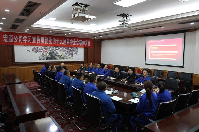 2019年11月22日下午3點,宏源公司在11樓中會議室召開學習宣傳貫徹黨的十九屆四中全會精神大會。公司黨委委員、班子成員、支部書記、群團組織主要負責同志、黨委辦工作人員參加會議。公司黨委書記、總經理李旭東主持會議。