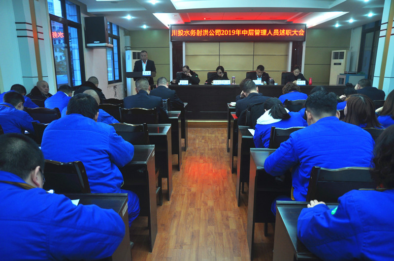 會上,公司綜合部、客戶部、生產部、工程部、二供部、安監部、環境檢測公司負責人共7名中層管理人員按順序上臺進行述職。他們分別立足本職崗位,圍繞德、能、勤、績、廉五個方面對2019年的工作完成情況、取得的成績和存在的不足做了工作述職。全體參會人員認真聽取了述職報告,并以無記名方式對每位中層管理人員進行了民主測評打分,測評結果將作為年度績效考核的重要依據。