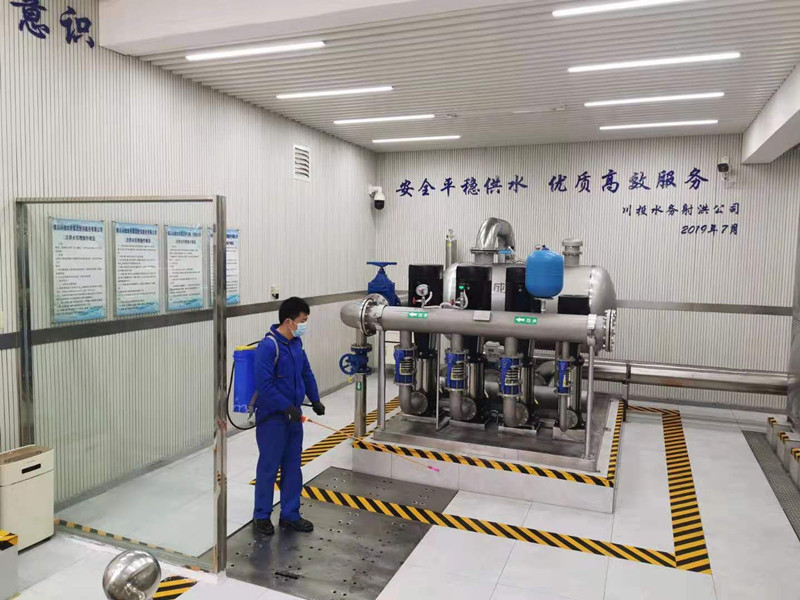 2月5日,射洪市一小區外DN160突然爆管,工程部人員立即趕往現場,半天時間搶修完成;連續奮戰2天,成功修復山水濱江破裂管道;二供部員工為防止污染,保證供水設施設備正常供水,定時到城區內管理的泵房對二次供水設施進行消毒,以確保最后一公里安全用水;生產一線員工堅守在崗,全力生產保供水;檢測中心員工在疫情肆虐期間,在做好自身防疫措施下,堅持對城區各處管網末梢水的采樣檢測,保證這非常時期全城區市民的用水安全。各部門員工各司其職、通力合作,積極做好公共區域消殺工作和宣傳引導工作,發放和張貼防疫宣傳資料,按照川投水務集團黨委要求,公司設立防疫宣傳站,每日廣播防疫宣傳知識,引導大家不外出、不集聚、戴口罩、講衛生,全力做好疫情防控工作。