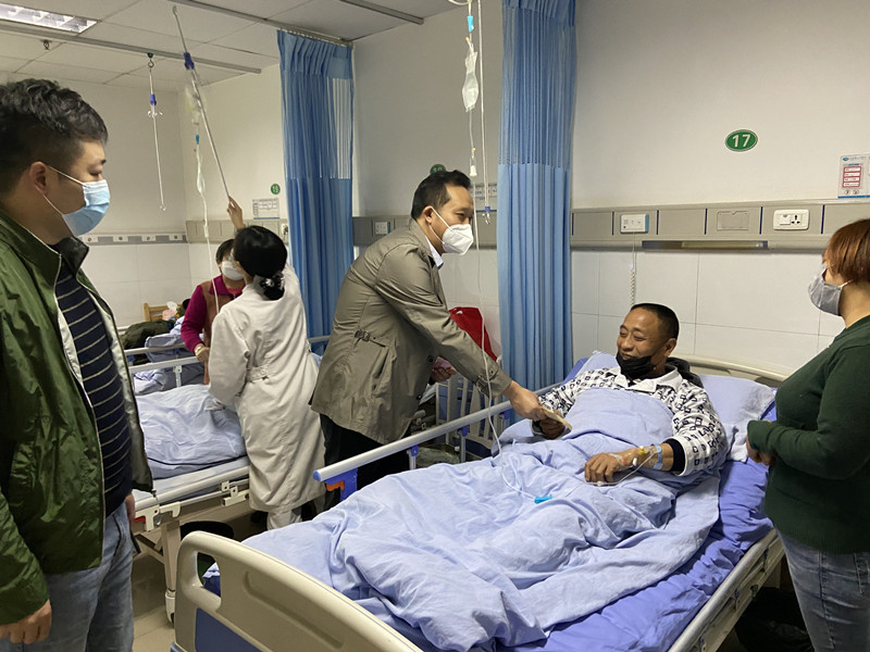 3月27日上午,大英水司黨支部書記、總經(jīng)理劉松果到大英縣人民醫(yī)院探望慰問因病住院結(jié)對幫扶貧困戶向東,代表公司送去愛心資助款,并以個人名義給予捐助。