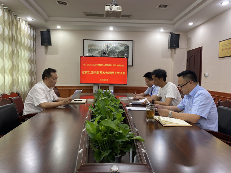 按照川投水務黨委《關于認真開好巡察反饋問題整改專題民主生活會的通知》要求,結合大英公司落實省國資委第二巡察組反饋意見的整改方案,5月18日下午,大英公司黨支部召開巡察反饋問題整改專題民主生活會。會議由大英公司黨支部書記、總經理劉松果主持,公司經營班子成員參加會議。