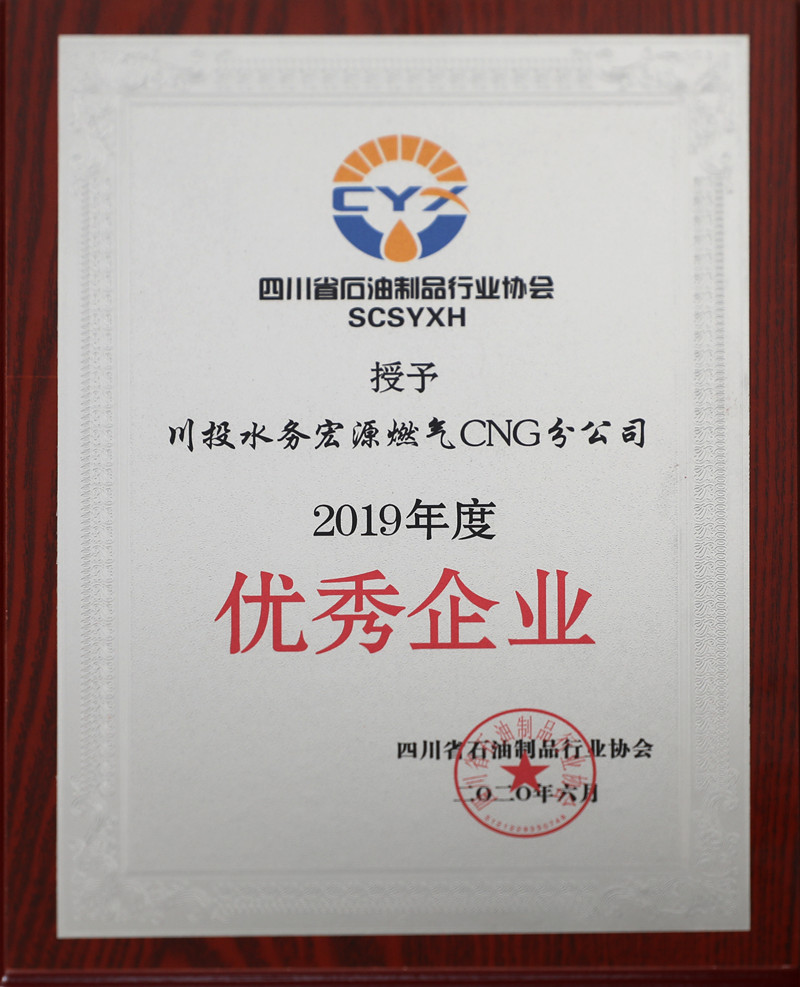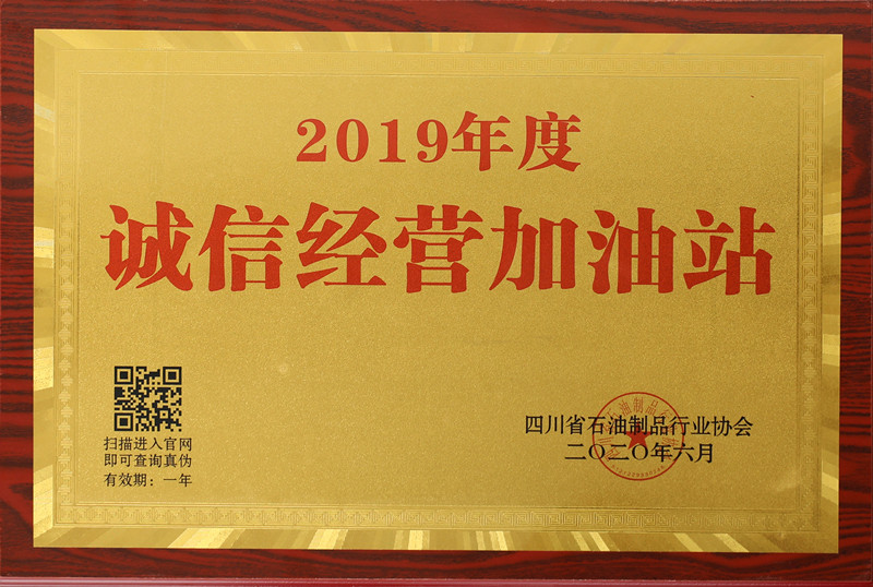 2020年6月5日,在四川省石油制品行業協會全省先進表彰暨誠信經營加油站授牌大會上,宏源CNG公司蟬聯“2019年度優秀企業”殊榮,被授予“2019年度誠信經營加油站”稱號。