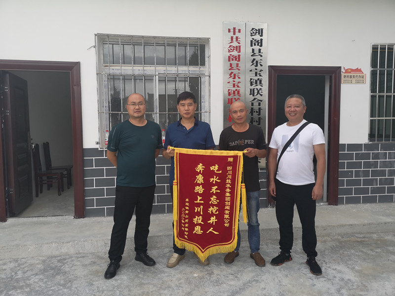 最后,何總在村委會聽取了駐村第一書記及村支兩委幫扶工作開展情況的匯報,與村支兩委交換了脫貧工作相關意見,青山村聯合村委會代表全體村民向劍閣水司送上了“吃水不忘挖井人、奔康路上川投恩”的錦旗!