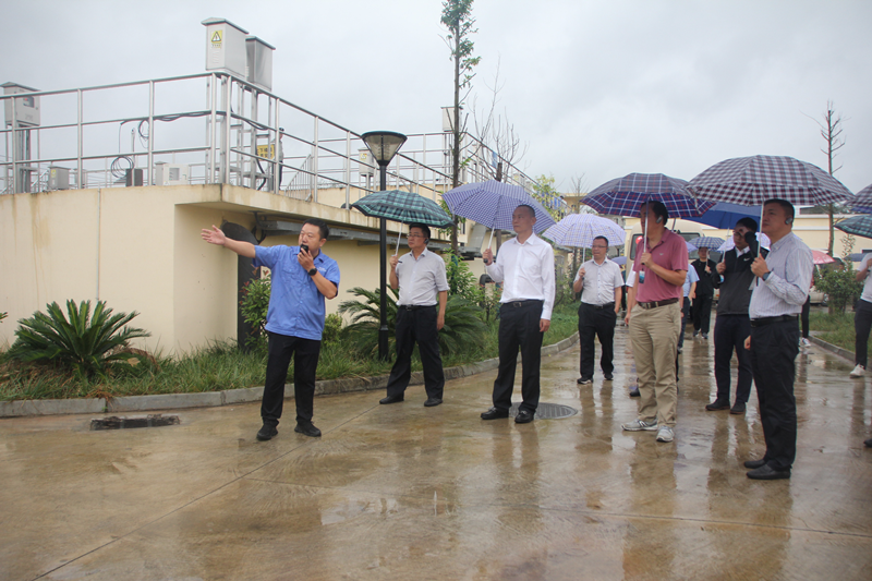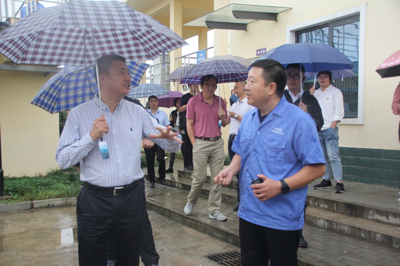2020年9月16日下午,郪江流域河(湖)長制工作聯席會議參會領導,四川省河長制辦公室二級巡視員宋超、四川省河長制辦公室河湖一室副主任王小會、四川省生態環境廳水生態環境處處長芮永峰,以及郪江流域各市、縣級河長等一行50余人冒雨深入川投水務中江水司龍臺污水處理廠調研。中江縣縣委書記蘇剛、縣住建局局長廖強陪同。