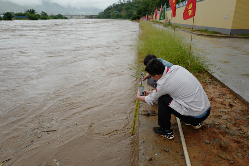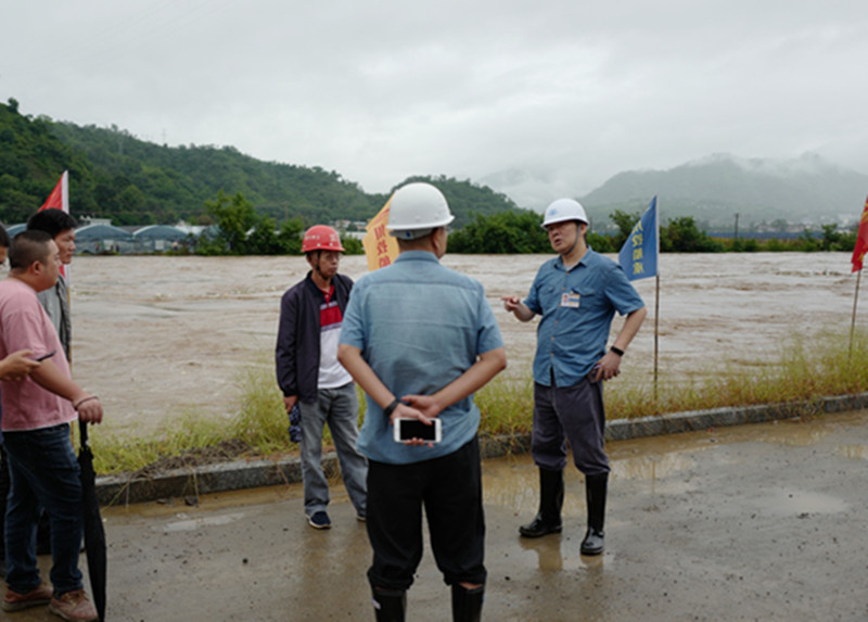 9月14日上午8時至11時,米易縣城區(qū)出現(xiàn)短時強(qiáng)對流及強(qiáng)降雨天氣,雨量達(dá)到76.8毫米,結(jié)合收到上游水文站的水位預(yù)警情況報告,公司第一時間快速反應(yīng),通知防汛(防疫)值班人員在保護(hù)好自身安全的前提下實(shí)時密切關(guān)注安寧河水位情況變化。8時51分,一枝山項目現(xiàn)場值班人員反饋安寧河河水上漲已經(jīng)超過標(biāo)高1057.5m,公司迅速啟動防汛預(yù)警,安委會主任馬銘偉、防汛工作總指揮李軍冒雨趕往項目現(xiàn)場,親自指揮防汛工作并與施工單位及防汛組人員一起,通知現(xiàn)場施工人員迅速從低洼處撤離轉(zhuǎn)移到安全地點(diǎn),對設(shè)備、物資等做好檢查與保護(hù)措施。9時54分,項目現(xiàn)場安寧河水位達(dá)到標(biāo)高1059m時(一枝山項目沿河段擋墻標(biāo)高1060m),已經(jīng)達(dá)項目防汛警戒水位,公司迅速啟動防汛應(yīng)急預(yù)案,防汛各小組人員迅速響應(yīng),觀察各工藝點(diǎn)情況,在河堤上巡察水位上漲情況,做到每十分鐘監(jiān)測一次水位,每半小時上報上級集團(tuán)水位情況。在工地防汛現(xiàn)場,公司安委會主任馬銘偉再次強(qiáng)調(diào)防汛人員安全問題,再次要求時刻繃緊防汛安全弦,正確使用防汛物資,要交叉迭砌沙袋等使防水墻更加結(jié)實(shí)。同時,防汛工作總指揮李軍在現(xiàn)場指出要嚴(yán)格執(zhí)行防汛應(yīng)急方案,并做好安寧河河水水位相關(guān)數(shù)據(jù)的記錄,收集好第一手影像資料,在今后的工作中依靠大數(shù)據(jù)做好汛期防范工作。