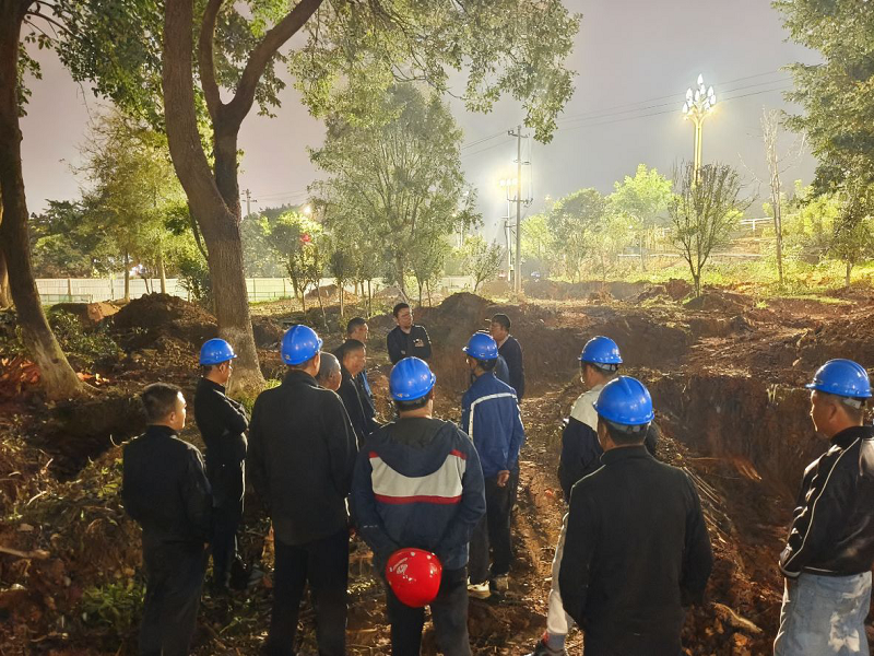 隨后,朱禹迅速按照預(yù)案,成立由其本人擔(dān)任組長、班子其他成員任副組長,工程技術(shù)部、綜合管理部、客戶服務(wù)中心、供水部等部門負(fù)責(zé)人及技術(shù)骨干為成員的搶險(xiǎn)指揮部,并下設(shè)兩個(gè)搶險(xiǎn)小組:第一組由公司常務(wù)副總經(jīng)理秦榮負(fù)責(zé),承擔(dān)中金快通興隆鎮(zhèn)凱歌大道中段供水主管的搶修任務(wù);第二組由公司副總經(jīng)理杜剛、高峰共同負(fù)責(zé),承擔(dān)繼光水廠DN700出水母管的搶修任務(wù)。指揮部確定了 “先控險(xiǎn)、再修復(fù)、保民生、兩線同時(shí)作戰(zhàn)”的搶險(xiǎn)總思路,并立下 “28日早上9時(shí)前恢復(fù)縣城區(qū)正常供水”的硬性目標(biāo)。各部門職責(zé)清晰細(xì)化:工程技術(shù)部主攻現(xiàn)場搶修,綜合管理部負(fù)責(zé)信息發(fā)布,客戶服務(wù)中心對接用戶溝通,供水部負(fù)責(zé)供水調(diào)度,全體人員隨即進(jìn)入“戰(zhàn)時(shí)狀態(tài)”,全時(shí)輪班投入搶險(xiǎn)工作中。